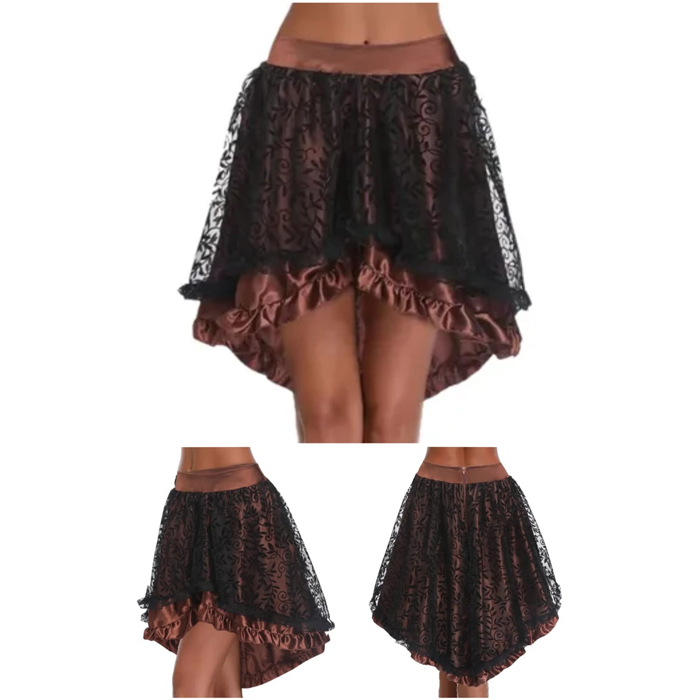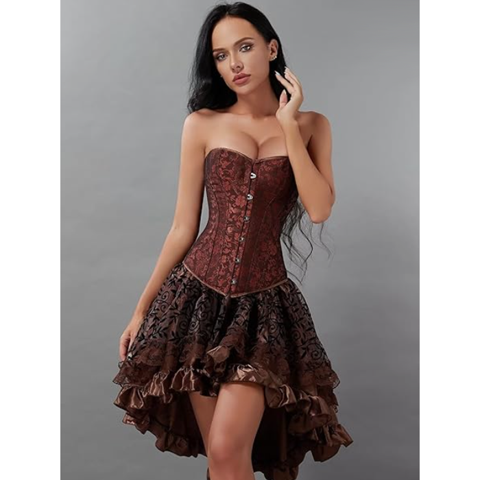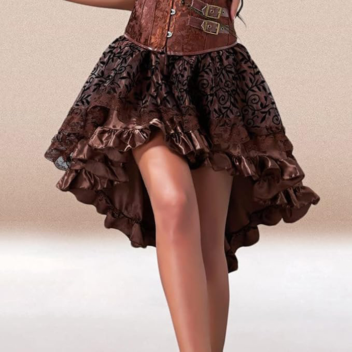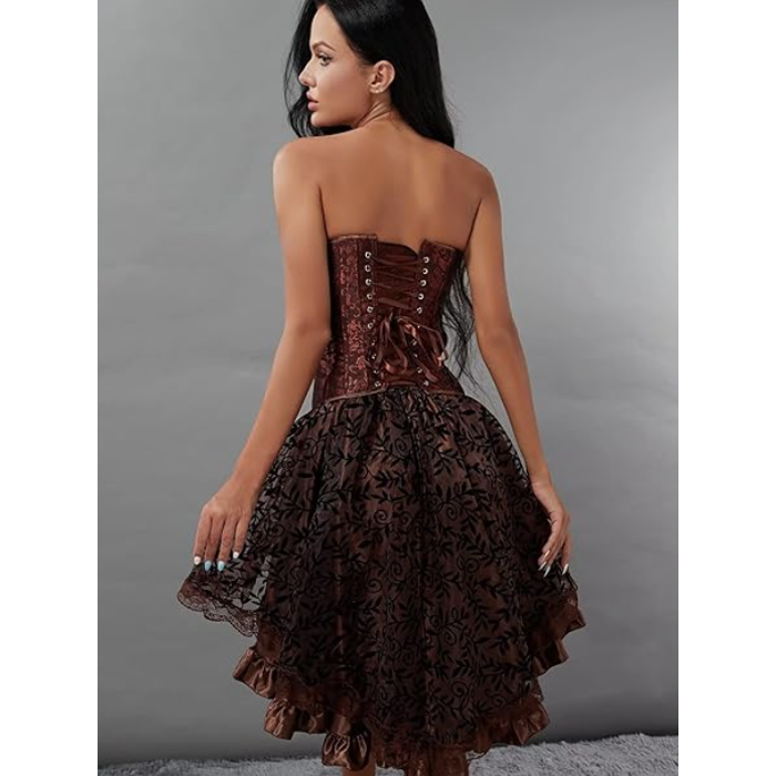 Brown Steampunk Corset High Waist Vintage Fluffy Pleated Layered Skirt C28