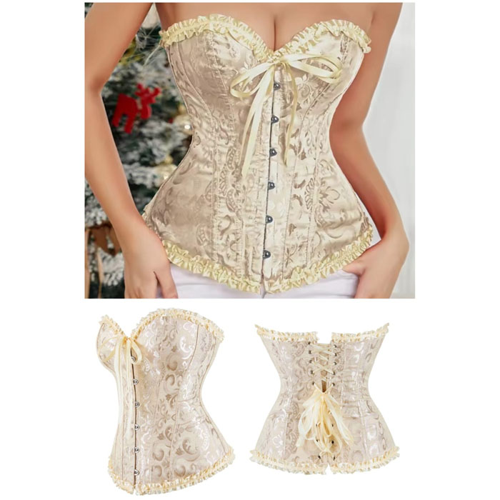 Women’s Vintage Overbust Corset, Victorian Gothic Tops Lace Up Boned Bustier Shapewear Slimming Waist Trainer Corset