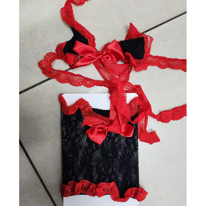 This two piece linked babydoll is made from soft, stretch fishnet fabric.
