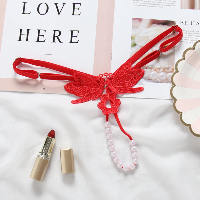Sexy Mini Embroidery Flower Pearl G-String