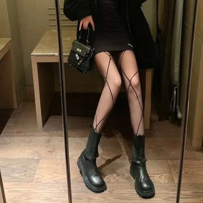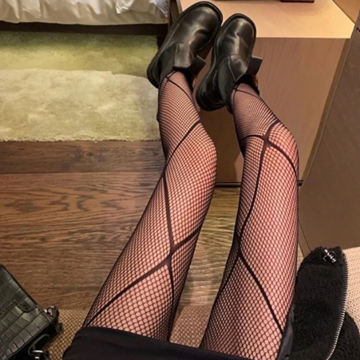 Fishnet Striped Jacquard Patterned Stretchy Full Stockings STR4