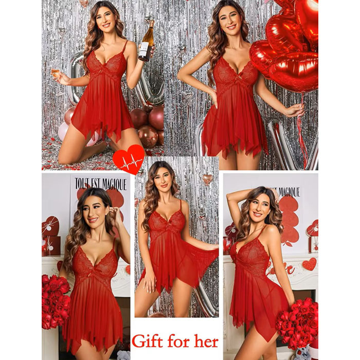 Lacy Open Front Fly Away Babydoll – Cherry Red