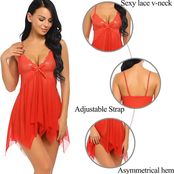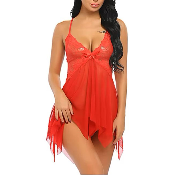 Lacy Open Front Fly Away Babydoll – Red
