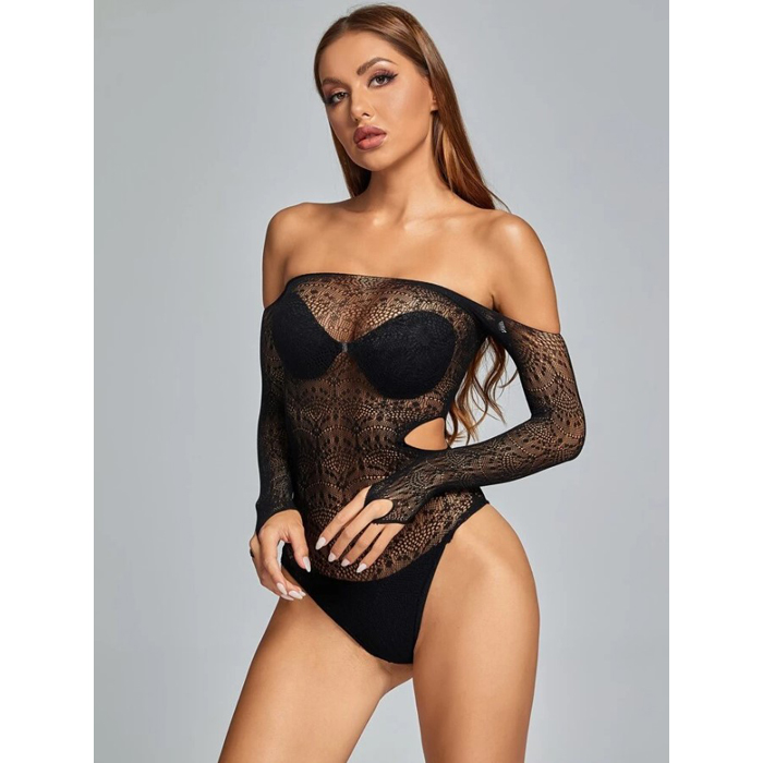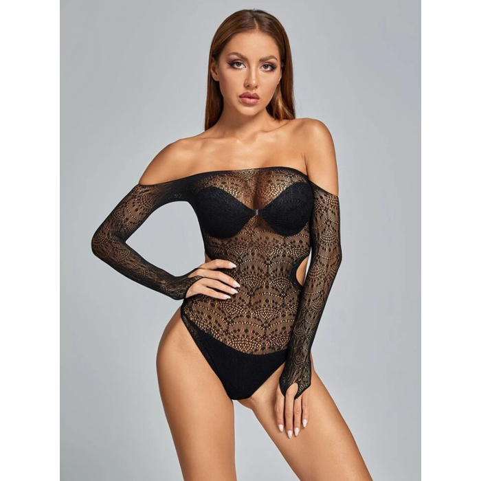 Off Shoulder Cut Out Stretch Bodysuit Teddy Lingerie