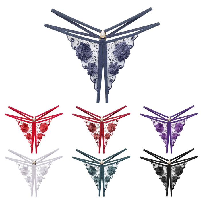 Sexy Mini Embroidery Flower Pearl G-String