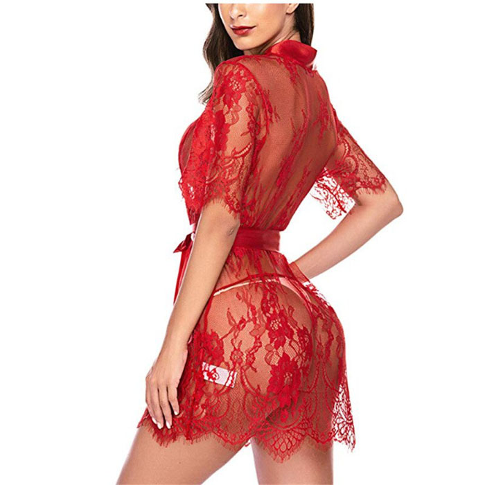 Eyelash Lace Kimono Robe with Thong
