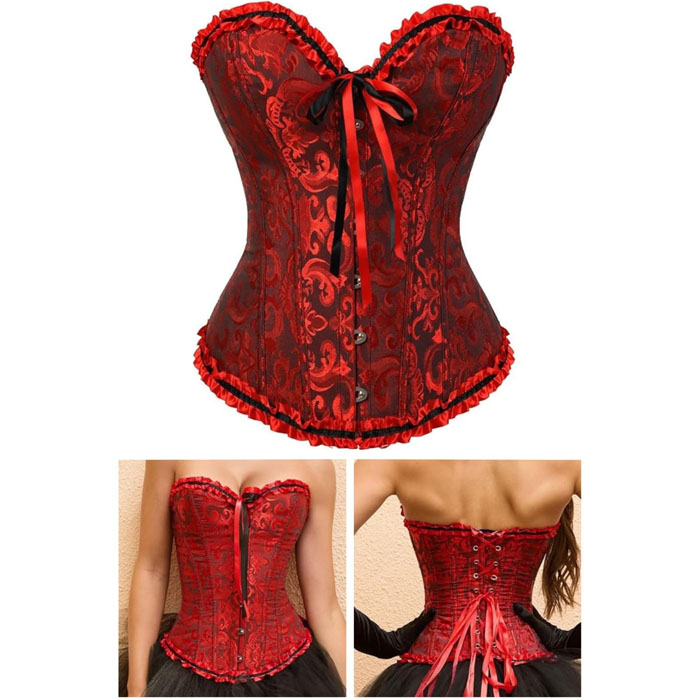 Women’s Vintage Overbust Corset, Victorian Gothic Tops Lace Up Boned Bustier Shapewear Slimming Waist Trainer Corset
