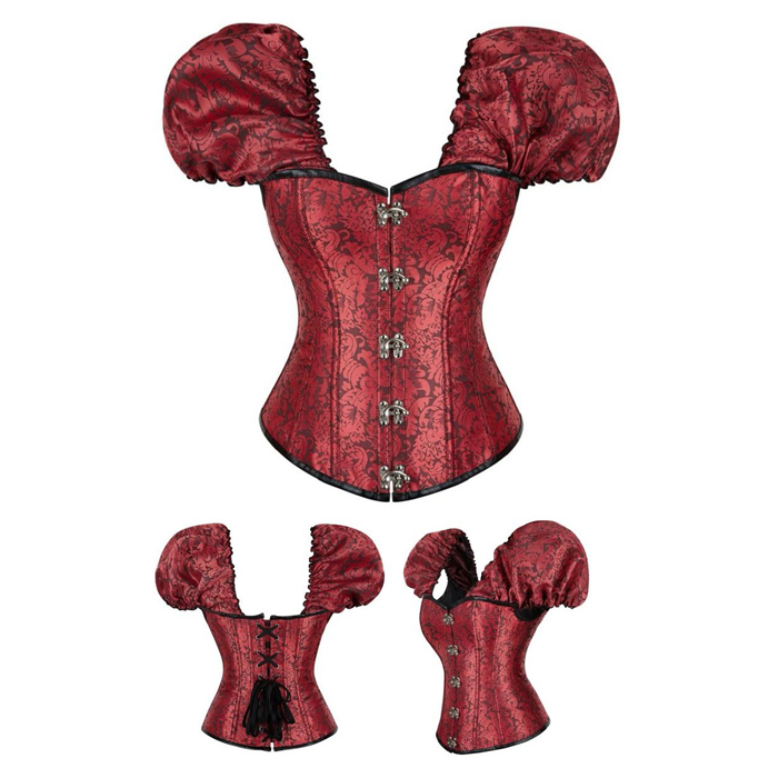 Renaissance Floral Lace Burlesque Short Sleeve Corset Top C42