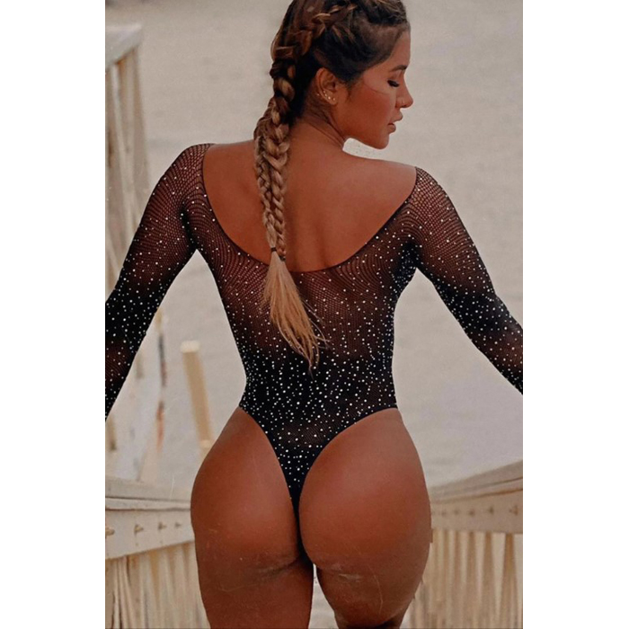 See-through Sparkle Bright Rhinestone Stretch Teddy Lingerie