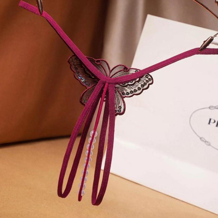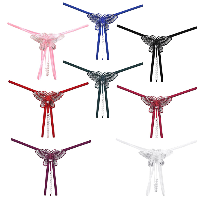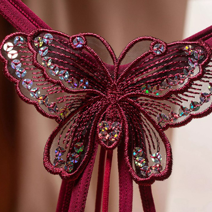 Sexy Butterfly Sequin Embroidery Pearl G-string