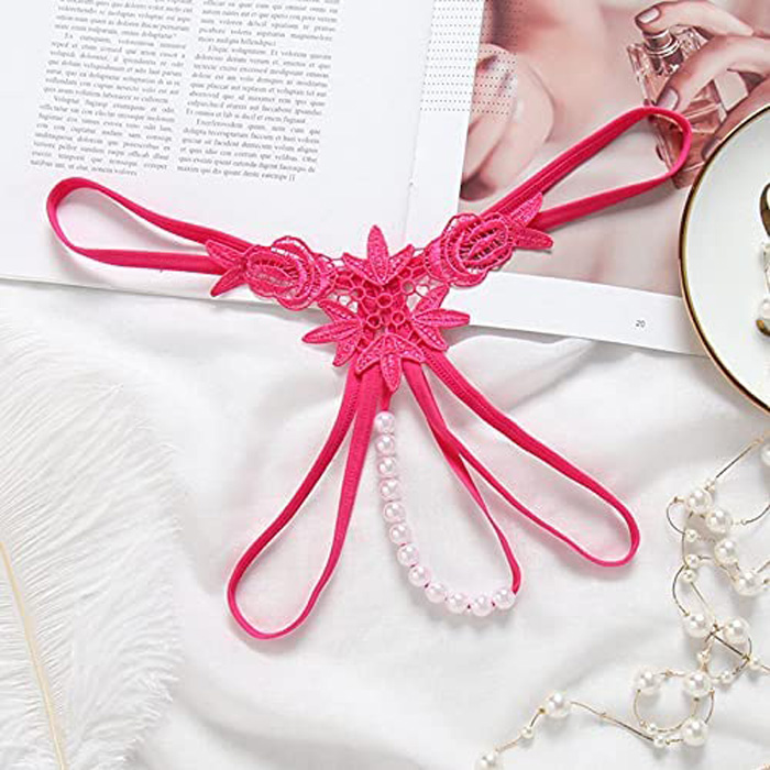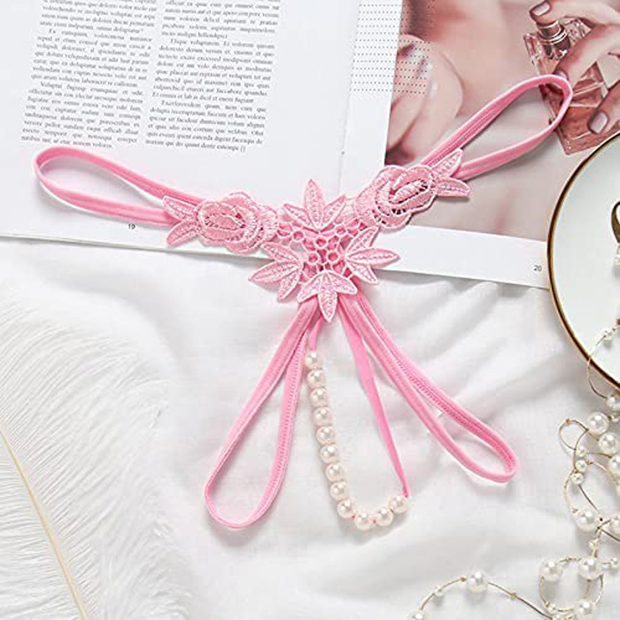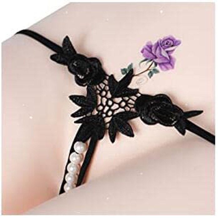Sexy Embroidered Flower Open Crotch Pearl G-string quantity