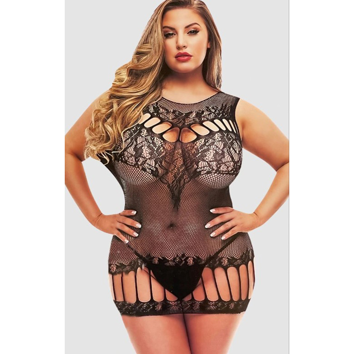 Take Charge Plus Size Fishnet Lingerie Mini Dress