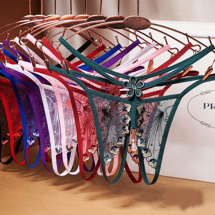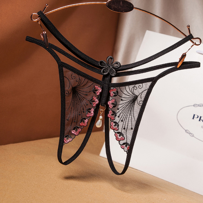 Transparent Open Crotch Flowers and Butterflies Sexy G-string PGR8