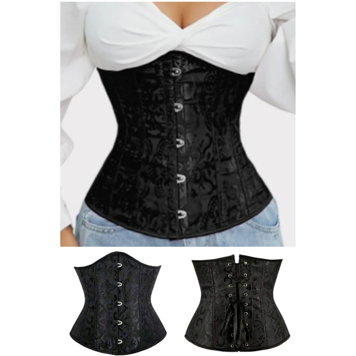 Underbust Jacquard Floral Brocade Satin Corset for Women Elastic Boned Waist Slimming Gothic Bustier Lace Corset