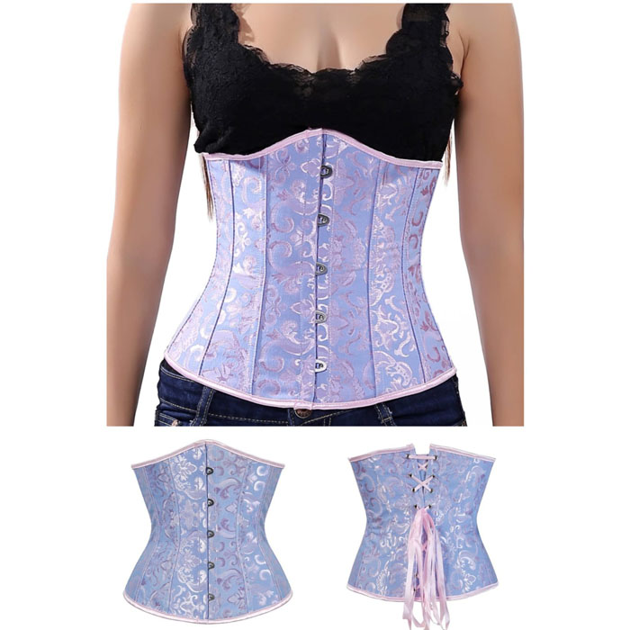 Underbust Jacquard Floral Bustier Corset Pink-Blue