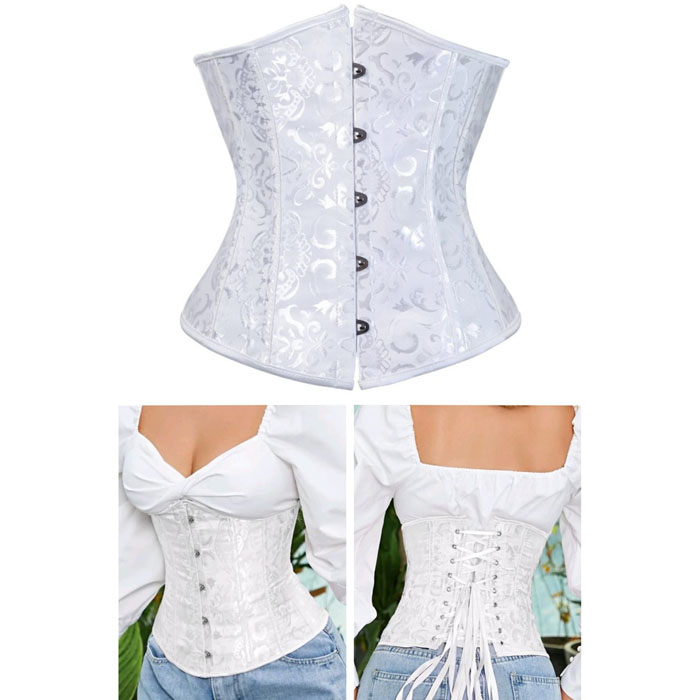Underbust Jacquard Floral Brocade Satin Corset for Women Elastic Boned Waist Slimming Gothic Bustier Lace Corset
